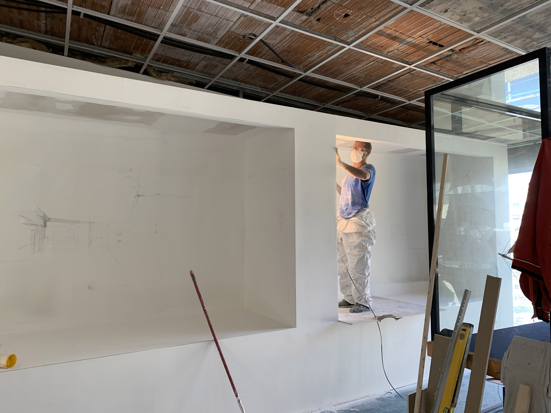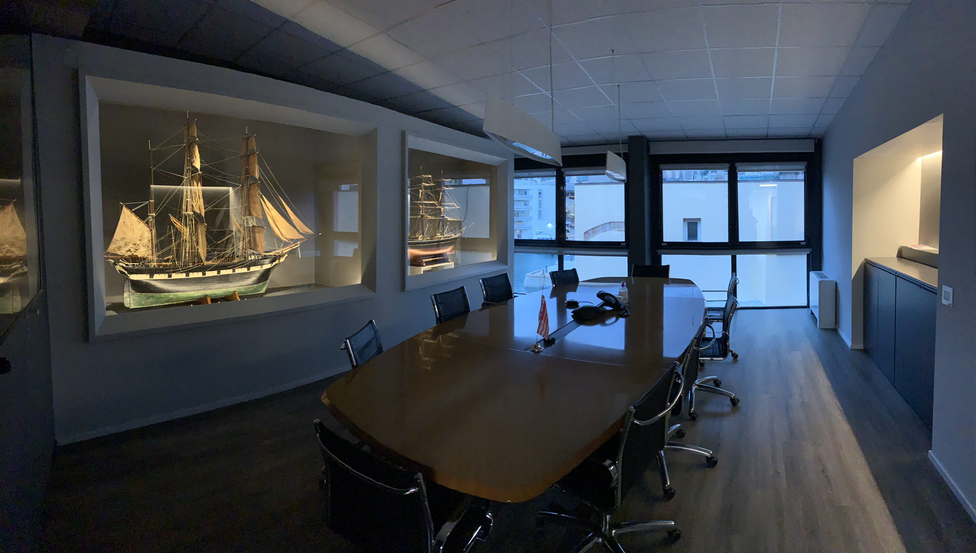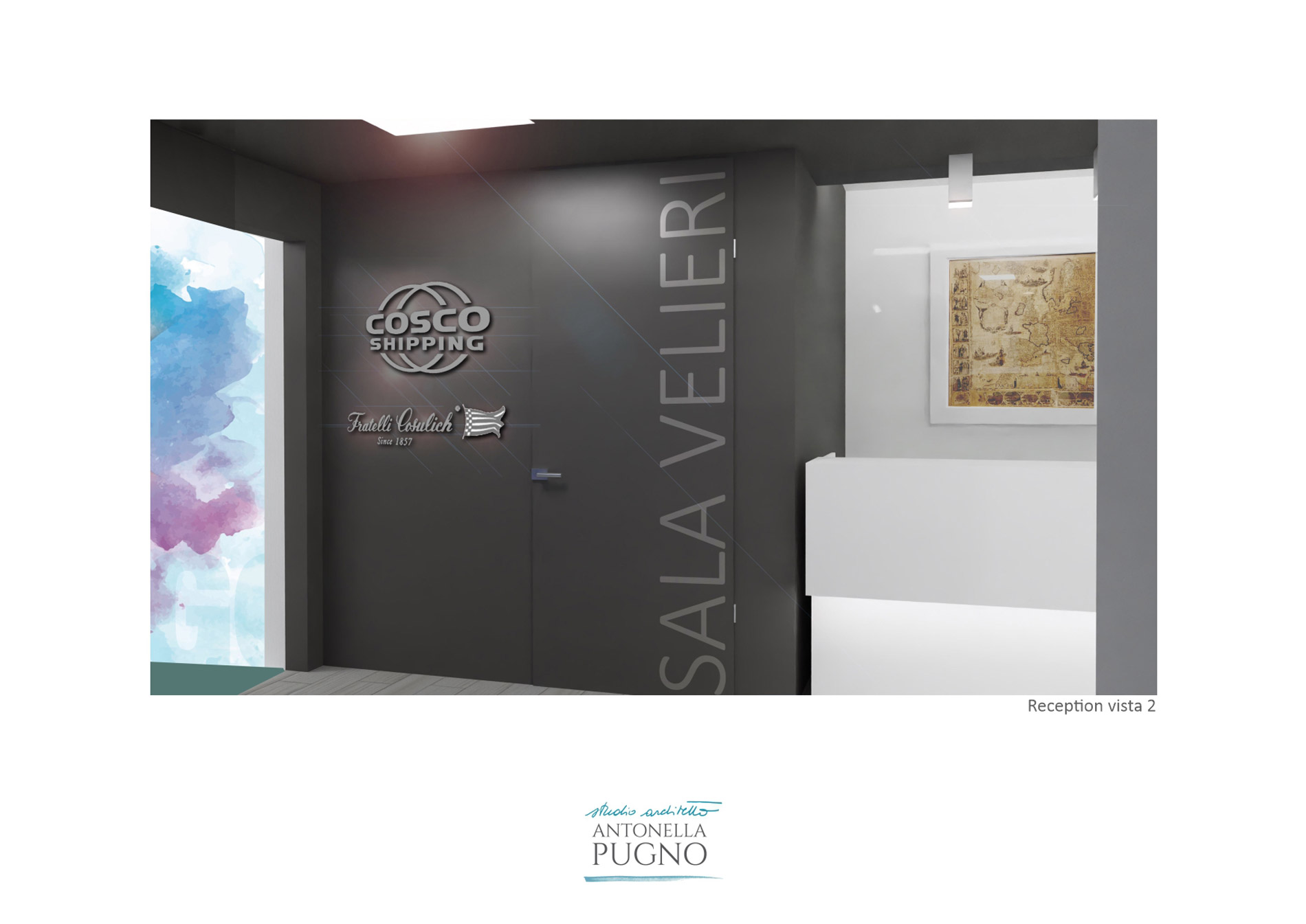 Due grandi aziende marittime condividono l’ingresso come ambiente di passaggio per chi arriva, per chi parte, per chi consegna e chi si ferma… ma non ci sono “panchine”.